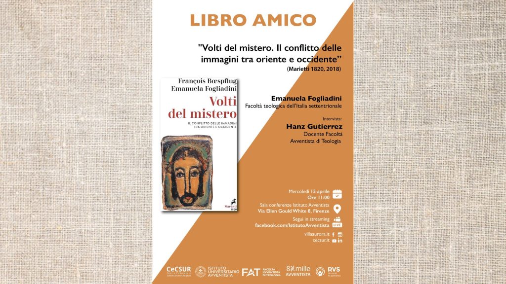 Il Centro culturale di scienze umane e religiose (CeCSUR), l’Istituto universitario (IUA) e la Facoltà avventista di teologia (FAT) di Firenze invitano a un nuovo appuntamento con la serie “Libro Amico”. Mercoledì 15 aprile, alle ore 11.00, sarà presentato il libro “Volti del mistero. Il conflitto delle immagini tra Oriente e Occidente” (Marietti 1820, 2018), di Emanuela La voce Libro amico. Volti del mistero è stata pubblicata per la prima volta su HopeMedia Italia. (Feed generated with FetchRSS)